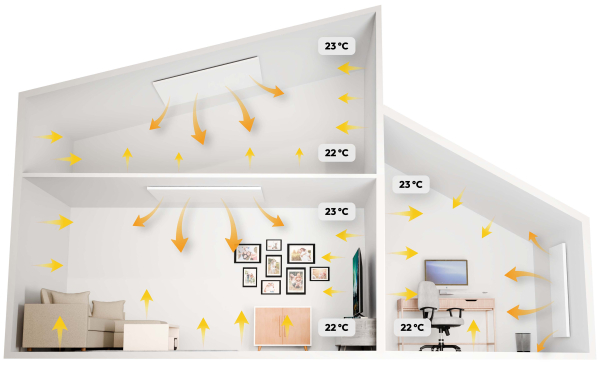Aufgrund ihrer außergewöhnlichen Effizienz sind sie besonders beliebt in folgenden Fällen: bei bestehenden Wohnhäusern, Neubauten, beim Austausch bestehender Heizsysteme, in kleinen und großen Wohnungen, Ferienhäusern, Wochenendhäusern, Mietobjekten, mobilen Häusern, Büroflächen, Gastronomiebetrieben, Gesundheitszentren, Geschäften, Spa-Zentren… Um eine optimale Leistung zu gewährleisten, wird die Installation der Paneele bis zu einer Deckenhöhe von 3,5 m empfohlen.